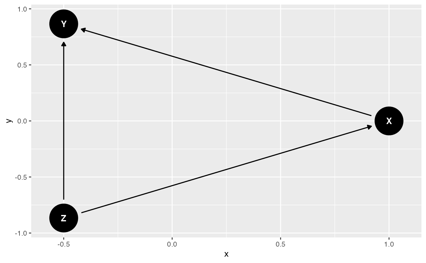 Y <- 0.5 * Z + 0.3 * X + rnorm(n)