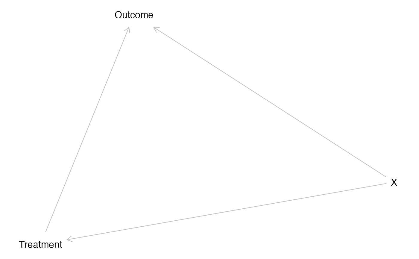 adjustmentSets(dag, exposure = "Treatment", outcome = "Outcome")## { X }
